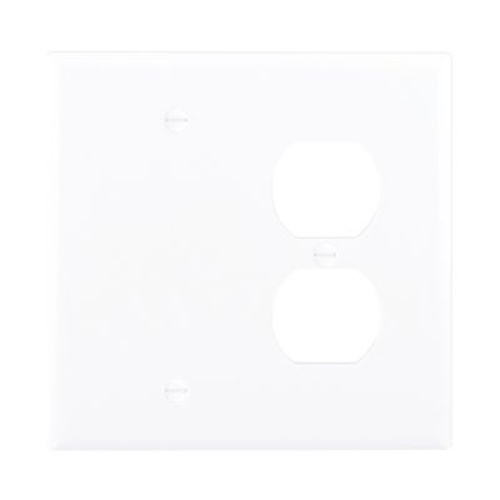 Eaton PJ138W - Combination wallplate, White, Duplex receptacle, Blank Cutout, Polycarbonate, Two- gang, Mid-size