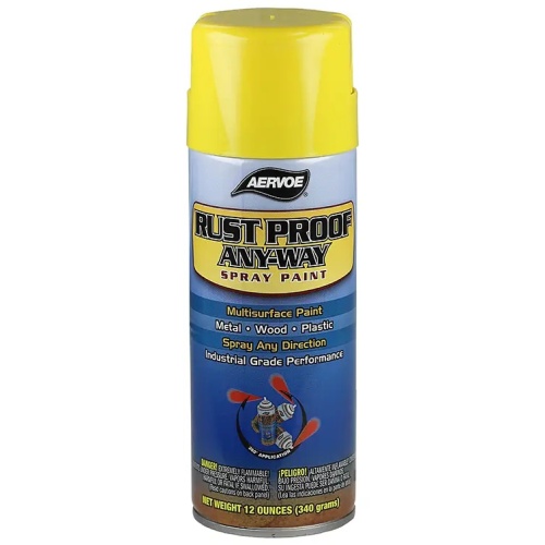The aerosol's Spray-Any-Way valve allows application in any direction, including upside down.