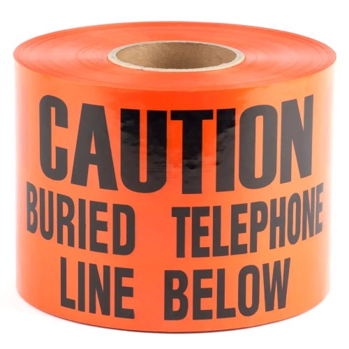Dottie UT46D - 6'' X 1000' Orange Underground Tape is made of polyethylene and serves as an effective underground warning tape for identifying buried utility lines. Its special features include continuous warning, cold climate pliability, unleaded pigment and ink, and reusability. With a tensile strength of 19.4 N/10mm width direction and 14.7 N/10mm length direction. Ideal for marking buried cables, pipes, and conduits.