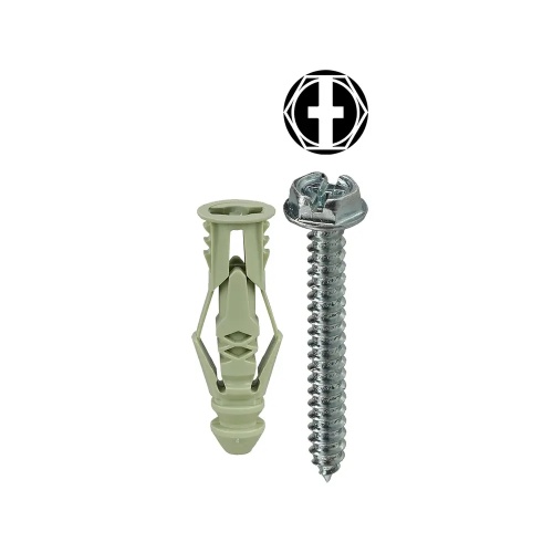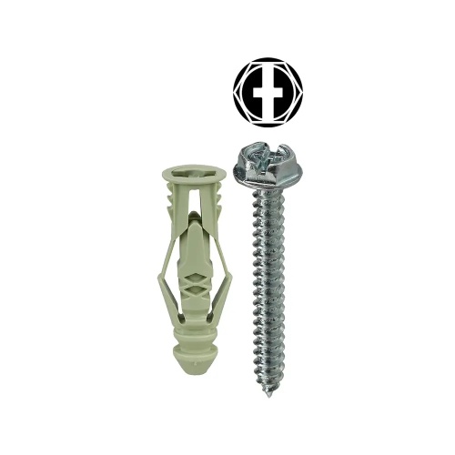 Dottie TG12KHX - #12 Green Triple-Grip Anchor Kit w/ Hex Head Combo Drive Screws is a nylon anchor kit designed for drywall applications. Features three points of contact for increased holding power and is vibration resistant. Kit includes 50 anchors, 50 screws, a masonry bit, and has a 3/8" pre-drill size.