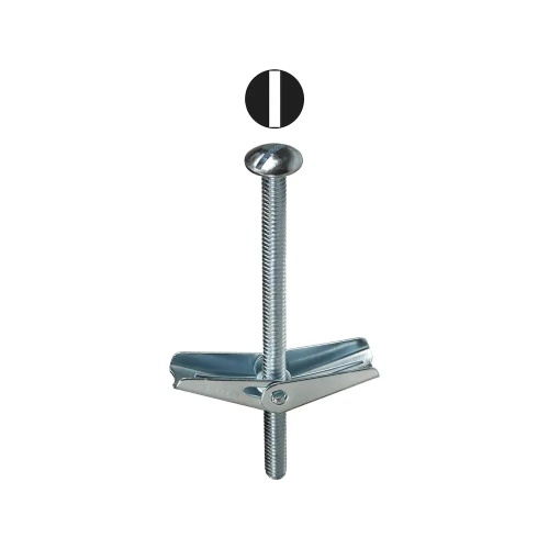 Dottie TB45 - 1/4'' x 5'' Slotted Mushroom Head Toggle Bolt is made of Carbon Steel with a Zinc Plated finish. It is designed for Hollow Block, Wallboard, and other Hollow Base Materials. The adjustable, contractor oriented design is easy to use, with wings that distribute load evenly. Anchor Diameter is 1/4''.