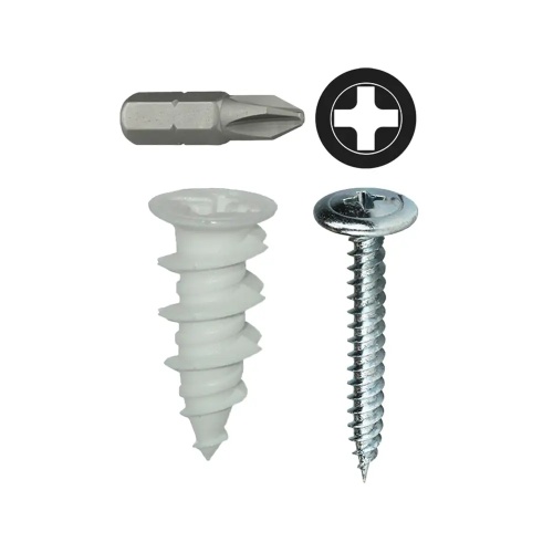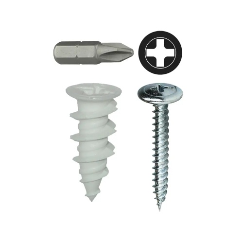 Dottie WDK8NW - #8 Nylon Walldriller Anchor Kit features 50 wall anchors and #8 x 1-1/4'' Phillips wafer head screws. This self-drilling kit is designed for walls, not ceilings, with superior pullout and shear strength. Non-conductive and no drill bit needed, the sharp profile thread cuts deep. Package includes #2 insert bit.