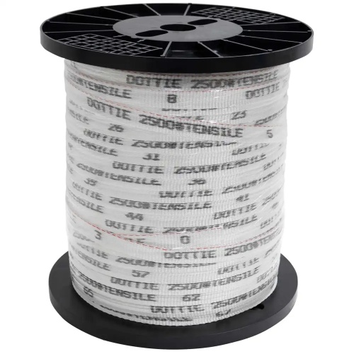 Dottie DWP1502 - This 3/4'' x 1500' Pull Line Measuring Tape is made of high tenacity polyester, perfect for high tensile strength and high temperature cable pulling. It features non-fading print when wet, low elongation, pre-lubrication, and dimensional stability. With a tensile strength of 2500 lbs, this durable tape minimizes duct melting and surging during use.