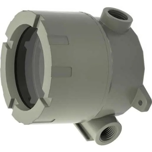 Killark HKBX-GLC - Compact round body instrument enclosures with threaded glass lens screw covers provide easy access to interior. High strength, lighter weight, corrosion resistant copper free cast aluminum construction. Glass lens made of tempered sode lime. Cover o-ring, Nitrile (BUNA-N) material, supplied standard supplied standard for a Type 4X rating. Cast mounting lugs are standard on all boxes. Internal ground screw supplied on all boxes. Electrostatically applied gray powder epoxy/polyester finish on exterior of box and covers. Offset feed-thru conduit openings (3/4” NPT) for maximum use of interior volume. Interior "X”-configuration mounting pad for instrument/device cast into the bottom of the box provided for flexibility. Covers have shrouded tamper resistant set screws as standard. Small compact, 4-1/4 ID. round body enclosure with a 2-3/4" depth. Option of 2 threaded lens covers and 2 blank threaded cover in 2 depths. The HBX series is for use in locations that are hazardous, corrosive, wet, hose down, dust, dirty, under both sever hot and cold ambient conditions. They are UL / CSA certified for Class I Groups BCD, Class I Zone 1 & 2 IIB+H2, Class II Groups EFG, Class III, Type 4 & 4X. Also, ATEX, IEC Ex, Ex db IIC, Ex e IIC, Ex tb IIIC T4…T3 IP66 with suffix “C”. Supplied with (3) ¾”NPT conduit openings, additional openings are available. HKBX series is made of die cast copper-free aluminum (less than 4/10 of 1%), supplied standard with a Nitrile (BUNA-N) O-Ring, internal external ground (earth) screws, stainless steel tamper proof locking set screw and electrostatically applied grey powder paint. Internal “X” pad for mounting instruments or terminals.