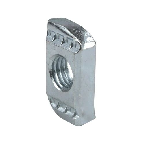 Dottie SCN38 - 3/8''-16 Channel Nut Without Spring is made of carbon steel, stamped from steel bar stock, and case hardened for durability. It features a zinc-plated finish and is designed for use with standard strut channels in construction applications. This channel nut provides a secure and reliable connection.