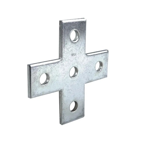 Dottie SFPC5 - 5 Hole Cross Plate Fitting is a carbon steel plate fitting for use with metal framing channels. Cold formed steel with electrogalvanized finish. Conforms to all tolerances in Metal Framing Standards Publication Section 5.3. Ideal for strut and metal framing channel applications. Designed for secure and reliable structural connections.