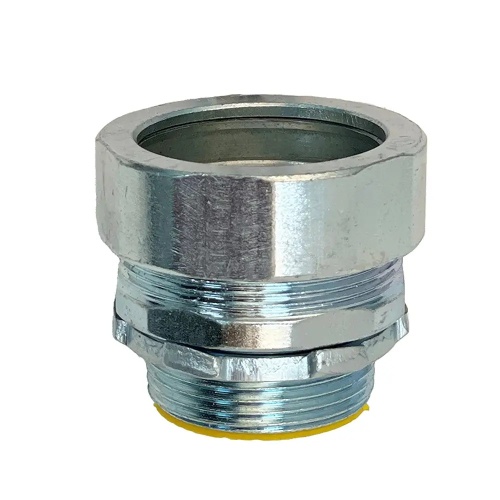 Dottie NT350I - 3-1/2'' Insulated No Thread Connector is made of durable alloy steel. It securely connects rigid/IMC conduit to an enclosure, with special features including direct burial rating and suitability for concrete use. Zinc plated finish, suitable for use with rigid/IMC conduit, insulated style, and threadless connection.