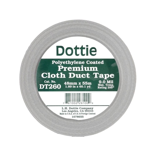 Dottie DT260 - 2'' x 60 yd Silver Industrial Grade Duct Tape is made of Polyethylene and features a natural rubber-based adhesive with low VOC content. Ideal for bundling, patching, sealing, mending, and general repair, it offers superior mechanical strength, excellent adhesion to smooth/rough surfaces, and a good balance of strength and conformability. Each roll is individually cello wrapped for added protection.
