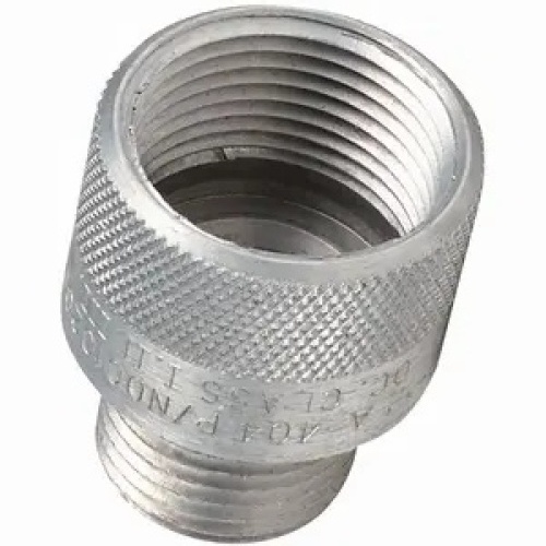 Killark ADUP-01 - Tapered threads (NPT) - Smooth internal bushing protects conductors - Threaded for Rigid Conduit or IMC Killark’s reducing bushings and adapters assist in reducing the trade size of tapped holes and its smooth internal bushing protects conductors. The wide variety of reducing ranges allow for almost any combination of size changes. It is available in copper-free aluminum and zinc plated steel. Application: Series ADUP suitable for Class I, Groups A, B, C, D.