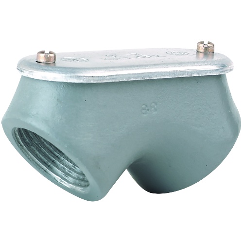 This elbow comes in copper-free aluminum with electro-statically applied powder coat paint and is available for threaded or thinwalled conduit