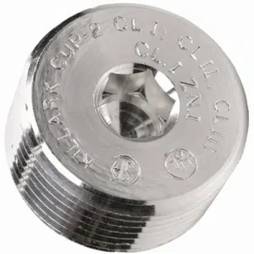 Killark CUP-2 - Threaded hubs (NPT) - To close up a tapped hole or hub Killark’s threaded close up plugs are used to plug tapped holes or hubs. Available in a wide range of sizes and finished in copper-free aluminum, steel and iron with a zinc electro plating. Application: To close up a taped hole or hub.