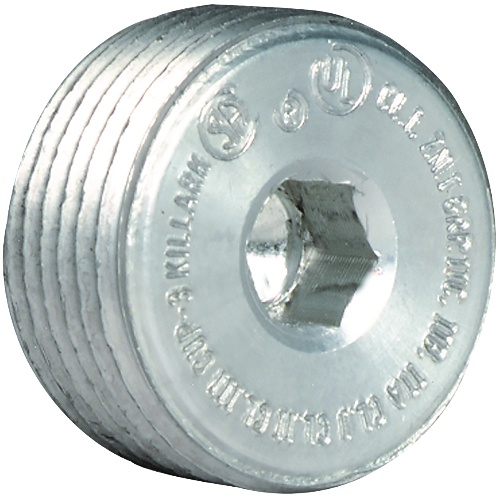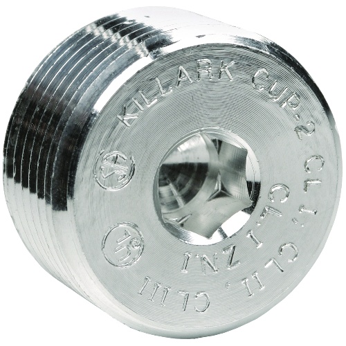 Killark CUP-375 - Threaded hubs (NPT) - To close up a tapped hole or hub Killark’s threaded close up plugs are used to plug tapped holes or hubs. Available in a wide range of sizes and finished in copper-free aluminum, steel and iron with a zinc electro plating. Application: To close up a taped hole or hub.