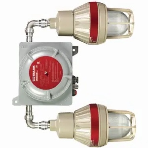 Killark EBS23DH-PTBG - LED Heads provide clear crisp illumination at 5000° Kelvin. LED Head L70 value 100,000 hours for minimal maintenance. Two head models up to 500% brighter than competitive conventional units. Enclosure Type 4 (NEMA 4) for wet and harsh locations. Group B is standard when using EBSHK type heads. Automatic Safety Disconnect – Removing main cover disconnects battery power. Ambient Suitability 0°C to 45°C Battery Unit Heads to 55°. Compact unit requires only two mounting points. World Voltage 120-277 VAC 50/60Hz input Other Features. High % of lumens maintained during 90 minute egress cycle. EBSHK type heads are fully adjustable on unit or remote when ordered with RFSL Factory Sealed mounting kits. EBSEL type heads are factory sealed on their EZ type mounting boxes. Heads can be remote mounted over 300’ from battery unit. Ni-Cad sealed batteries provide 90 minutes of illumination. Integral base unit LED pilot light indicates AC power is present. Choice of Integral or Remote Push-To-Test station to verify system operation. Vapor Capsule to inhibit corrosion is standard with main enclosure unit. Terminal Blocks identified for incoming and outgoing connections The EBS Series Explosion Proof LED Emergency Battery Backup System is designed for egress or anti-panic applications. This fixture is made with a cast copper-free aluminum housing and fixture heads that are powder epoxy powder coat painted for extra corrosion resistance, making them suitable for harsh and hazardous environments. - Class I, Divisions 1 & 2, Groups C, D - Class I, Zones 1 & 2, Groups IIB, IIA - Class II, Divisions 1 & 2, Groups E, F, G - Class III, Divisions 1 & 2