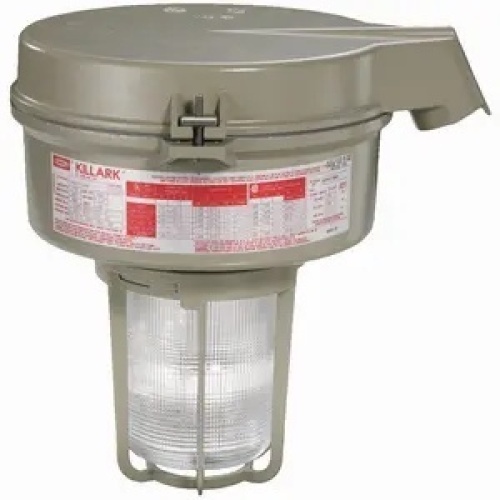 Killark VE3Q2626E30A2GLG - Quad-Pin triple-tube long-life compact fluorescent lamps included. World Voltage 120-277VAC 50-60 Hz. LED charging indicator light visible through lens. Prewired terminal block for easy power connection. Two lamp models include two independent redundant systems. Six mounting splice box types - Pendant, Ceiling, Wall bracket, Cone Top, 25° Angle Stanchion, Straight Stanchion. Normally shipped as components for fast delivery or may be ordered factory assembled. Options for Fuses and Quick Disconnect The VE3Q Series Emergency Compact Fluorescent High bay luminaires are designed for easy installation in high bay applications. This fixture is made with a cast copper-free aluminum housing and mount that is suitable for harsh and hazardous environments. - Class I, Division 2, Groups A, B, C, D - Class I, Zone 2, Groups IIC, IIB, IIA - Class II, Division 2, Groups F, G - Class III, Divisions 1 & 2