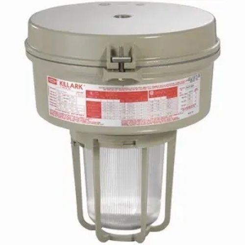 Killark VE3Q6432E30A2GLG - Quad-Pin triple-tube long-life compact fluorescent lamps included. World Voltage 120-277VAC 50-60 Hz. LED charging indicator light visible through lens. Prewired terminal block for easy power connection. Two lamp models include two independent redundant systems. Six mounting splice box types - Pendant, Ceiling, Wall bracket, Cone Top, 25° Angle Stanchion, Straight Stanchion. Normally shipped as components for fast delivery or may be ordered factory assembled. Options for Fuses and Quick Disconnect The VE3Q Series Emergency Compact Fluorescent High bay luminaires are designed for easy installation in high bay applications. This fixture is made with a cast copper-free aluminum housing and mount that is suitable for harsh and hazardous environments. - Class I, Division 2, Groups A, B, C, D - Class I, Zone 2, Groups IIC, IIB, IIA - Class II, Division 2, Groups F, G - Class III, Divisions 1 & 2