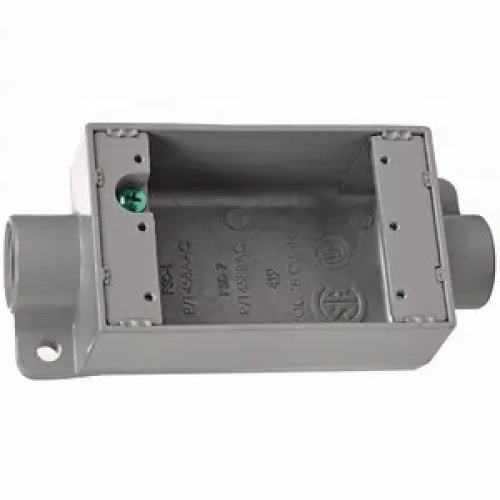 Killark FSC-1M - Tapered threads (NPT with integral bushings). Internal grounding screw. Optional mounting feet available. Single gang style. Suitable for use in wet locations when used with gasket covers. Cast iron is suitable for concrete use. For use with FS-style cove Application: Accommodates wiring devices and provides opening to splice, tap, or pull conductors. Provide access to conductors for maintenance and future system changes.
