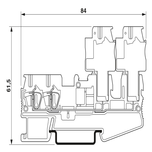 Phoenix Contact 3040038 A feed-through terminal block has a nominal voltage of 500 V and a nominal current rating of 24 A, accommodating up to four connections using a spring-cage/plug-in connection method. The cross-sectional area for the first level connections ranges from 0.08 mm2 to 4 mm2, with a rated cross-section of 2.5 mm2. Mounting options include NS35/7.5 and NS35/15 configurations, while the terminal block itself is gray in color.