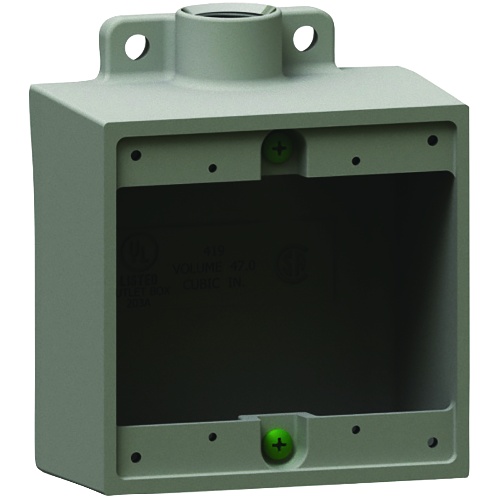 F series device boxes accommodate wiring devices and provides opening to splice, tap or pull conductors