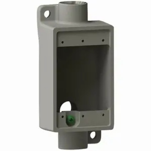 Killark FSCA-1 - F series device boxes accommodate wiring devices and provides opening to splice, tap or pull conductors. It provides access to conductors for maintenance and future system changes. Suitable for use in wet locations when used with gasket covers. All devices are offered in our copper-free aluminum with electro-statically applied powder coating. Some devices are configured for our tri-coat protected iron. Application: Accommodates wiring devices and provides opening to splice, tap, or pull conductors. Provide access to conductors for maintenance and future system changes.