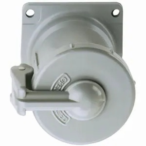 Killark VR1042 - Patented “Breech-Lock” cap serves as both flip lid and screw cover. Patented notch in cap arm holds cap open for easy plug insertion or maintenance. Type 4X rating when inserted into VersaMate receptacle and locking ring is tightened. Patented pin design uses slotted spring clip which avoids excessive wear while providing continuous electrical pin to sleeve contact. “Increased Safety” type box terminals with gripper ribs securely clamp around conductors. Boxes come with a green grounding screw. VersaMate® metallic pin & sleeve plugs, receptacles, and in-line connectors are designed for heavy duty industrial use. These devices supply power to both fixed and portable electrical equipment including pumps, generators, welders, vacuums, blowers and similar apparatus. Suitable for indoor and outodoor use, as well as applications that include wet, cold, hosedown, hazardous and corrosive environments. Configurations are also available in reverse-service and polarized orientations.