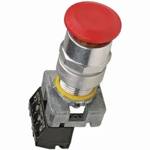 Killark GOM21-RM3C - G Series - Short Momentary Contact Single Push/Pull Button Operator - Red Mushroom Button With Blank Nameplate - 1NO/1NC Contact Rating