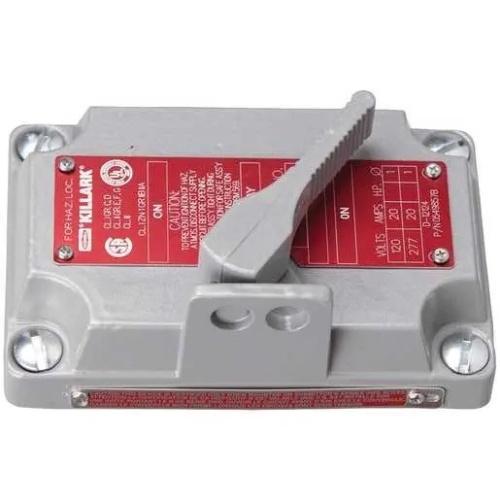 Killark XS-8C - Front lever rotary operated switch assemblies. Standard provisions for padlocking in either “ON” or “OFF” position. The lever is connected to a threaded stainless steel shaft which passes through the cover. Killark XCS SERIES TUMBLER SWITCH Control Stations provide control means in hazardous location areas turning ON and OFF Motors, Fans, Lights etc. Utilized in Class 1 Division 1 & 2, Class 1 Zone 1 & 2 areas for indoor use are a Non-Factory Sealed unit requiring the need for a conduit seal fitting. UL Listed and CSA Certified.