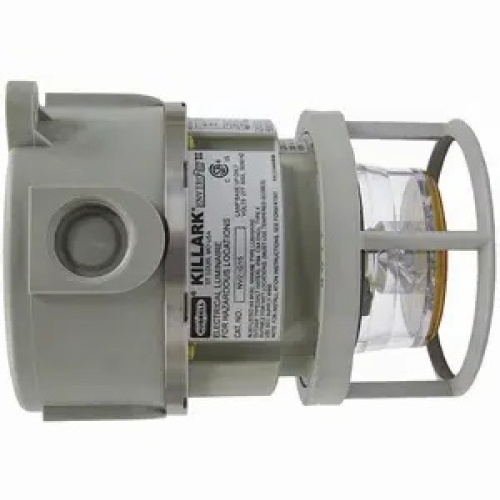 Killark NVSLCSG25CXG - NV2 Series, Gray Non-Metallic, Cmpt Steady LED Lt Fixt (LED Incl), 3/4" Ceiling Mount w/ Clear Strobelight & Guard, 120-240VAC, 50/60Hz