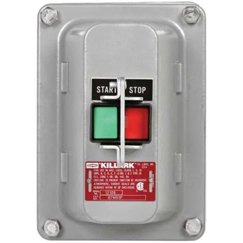 Killark B7MS1PS-1 - B7MS Series - Aluminum Compact Push Button Style Enclosure with Manual Square D IEC Starter - B7EP Enclosure - 0.5Hp Max - Class I, Divisions 1 & 2, Groups B, C, D - Class I, Zones 1 & 2, Groups IIB+H2, IIA - Class II, Divisions 1 & 2, Groups E, F, G - Class III, Divisions 1 & 2