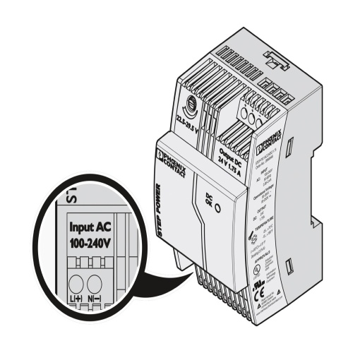 STEP-PS/ 1AC/24DC/1.75 Phoenix Contact STEP-PS/1AC/24DC/1.75. 24 volt 1.75 Amp Power Supply(Class 1 Div 2) and 85-264 Vac or 95-250 Vdc input voltage. Din rail mount Screw Connection. Temperature range of -13 F to 158 F. Din rail mount.
