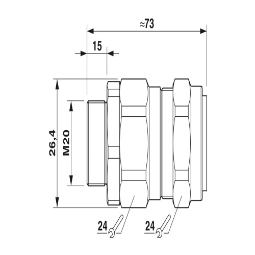 Phoenix Contact 1411088 The cable gland is made from a brass material with a nickel plating and features an M20 x 1.5 threaded connection. It is suitable for applications outside the building, where the external diameter of the cable ranges from 9.5 mm to 15.9 mm, and provides shielding.