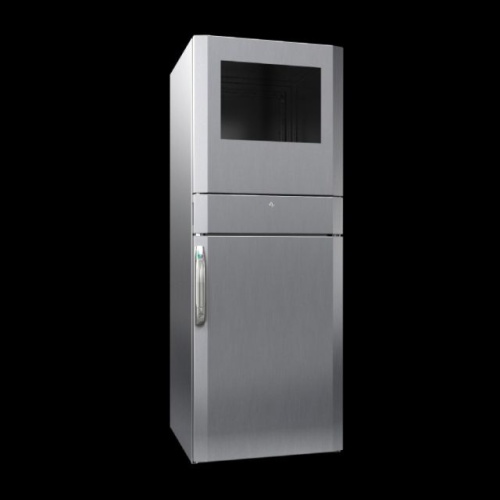 Design: Stainless steel with glazed door at the top, keyboard drawer and component shelf