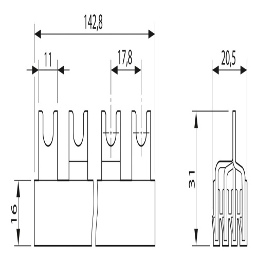 Phoenix Contact 2809283 Wiring bridge for modules with connecting pitch 17.5 mm, 4-phase, 8-pos.