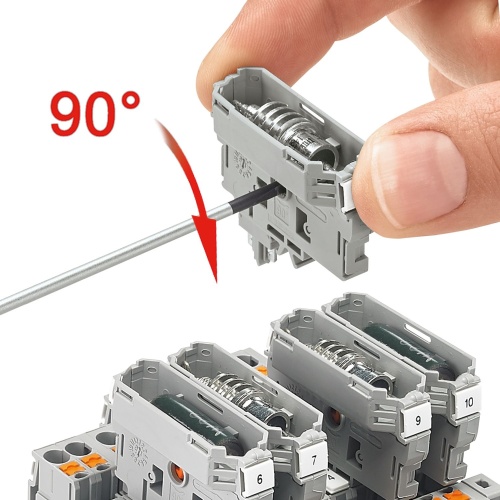 Phoenix Contact 3036799 The component connector is suitable for installing individual components up to 10mm in diameter and with a maximum power dissipation of 1W. It has a nominal voltage rating of 400V and a maximum current capacity of 10A, utilizing a plug-in connection method that measures 37.5mm in depth, 12.3mm in width, and 41.2mm in height, accommodating a single component position, available in gray color, and features pluggable mounting via a slot system.