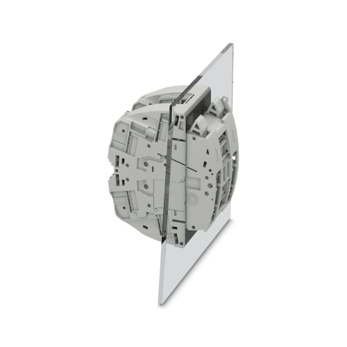 Phoenix Contact 3969917 The test terminal has a nominal voltage rating of 400 V and four connections that span two positions, utilizing ring cable lugs with a rated cross-sectional area of 6mm2 on one level, mounted to the panel and featuring a gray color.
