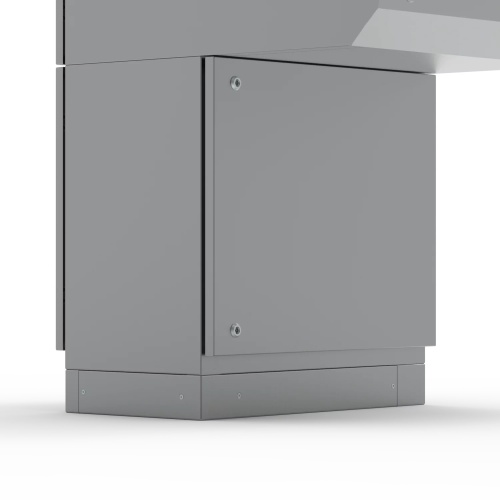 Description: Allowing cabling without any restrictions and in accordance with the VDE 0113 standard. The plinth consists of four corner pieces with removable plates. Available 100 mm and 200 mm high.