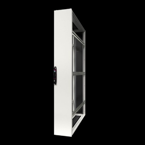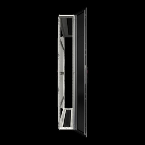 Rittal 5380830 - Includes: Enclosure frame with front and rear door, Aluminium door, front, solid with black designer trim panel, 180° hinges, Sheet steel rear door, solid, one, piece, 130° hinges, Lock front and rear: Comfort handle for profile half, cylinders and security lock 3524 E, 2 roof/base plates, with cut, outs for cable entry via brush strips, 3 VX punched sections with mounting flanges mounted on the left and right
