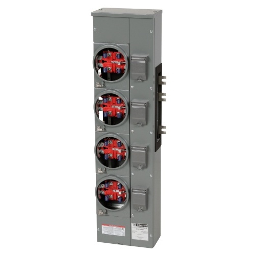 Schneider Electric EZMR114125 - Single Phase In, Single Phase Out, 125 Amp, 120/240 VAC, 5 Without Jaw Release Jaws, 4 Meter Sockets - 48.12" x 12.25" x 7.09" (HxWxD)