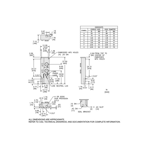 Schneider Electric MP22125 - Single Phase, 120/240 VAC, 4 Jaws, 2 Meter Sockets - 37.5" x 12.28" x 7.28" (HxWxD)