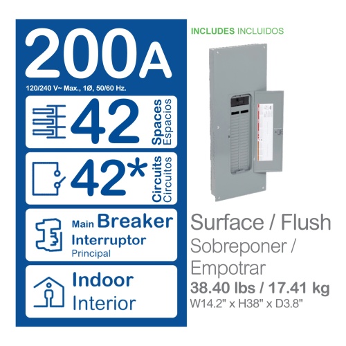 Schneider Electric QO142M200PCVP Load Center - 120/240 VAC, 42 Spaces, NEMA 1