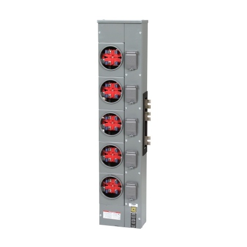 Schneider Electric EZM115125X - Single Phase In, Single Phase Out, 1200 Amp, 120/240 VAC, 4 Without Jaw Release Jaws, 5 Meter Sockets - 57.1" x 12.2" x 7.09" (HxWxD)