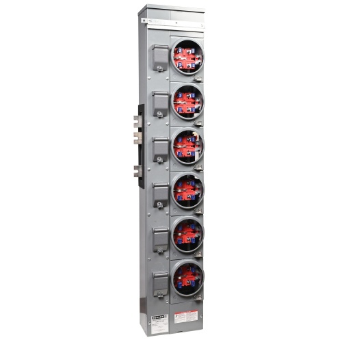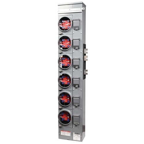 Schneider Electric EZMR116125X - Single Phase In, Single Phase Out, 125 Amp, 120/240 VAC, 5 Without Jaw Release Jaws, 6 Meter Sockets - 66.12" x 12.25" x 7.09" (HxWxD)