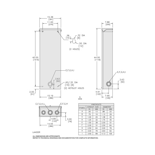 Schneider Electric LA400R - Circuit breaker enclosure, LA, 125A to 400A, NEMA 3R, 15.38in W x 44in H x 7.88in D