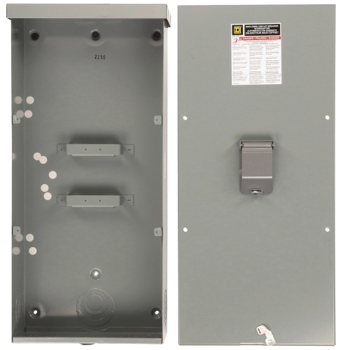 The enclosure accepts 80% or 100% rated circuit breakers