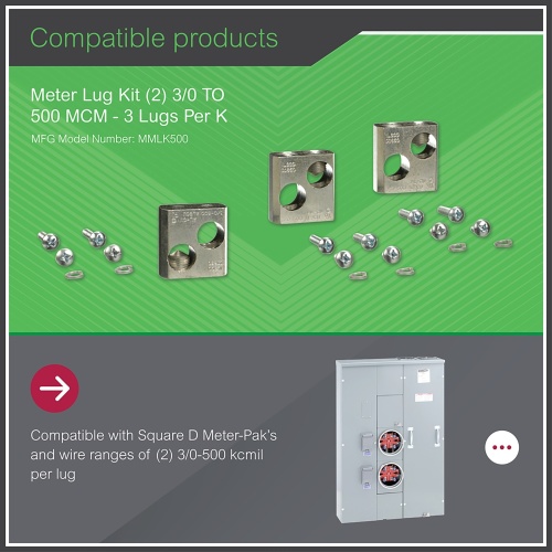 Schneider Electric MMLK500 - MP Meter Pak, lug kit, consists of three lugs, two 3/0 AWG to 500 kcmil