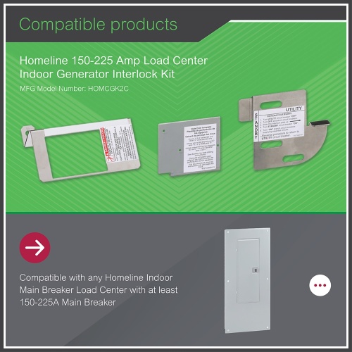 Schneider Electric HOMCGK2C - Load center accessory, Homeline, interlock kit, generator circuit breaker, high amp, indoor, clam packaging