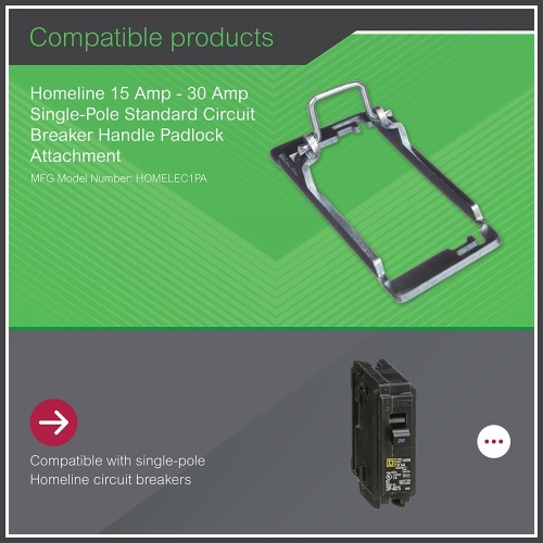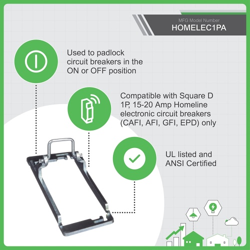 Schneider Electric HOMELEC1PA - Mini circuit breaker accessory, Homeline, padlocking kit, 1 pole CAFI, DF, GFI, AFI, and EPD breakers, on/off lock
