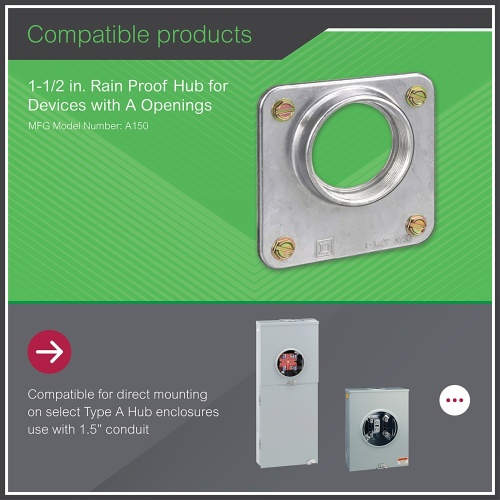 Schneider Electric A150 - Meter pak accessory, hub, 1.50in wire size, Series A, rainproof, 3.31in