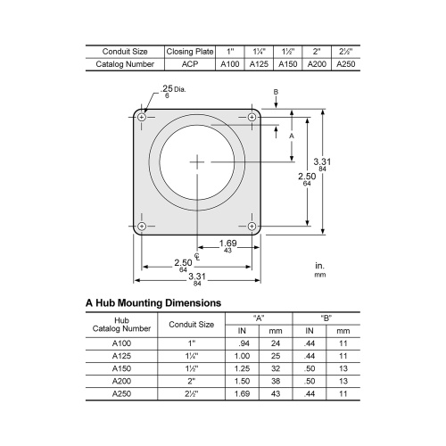 Schneider Electric A125 - Meter pak accessory, hub, 1.25in wire size, Series A, rainproof, 3.31in