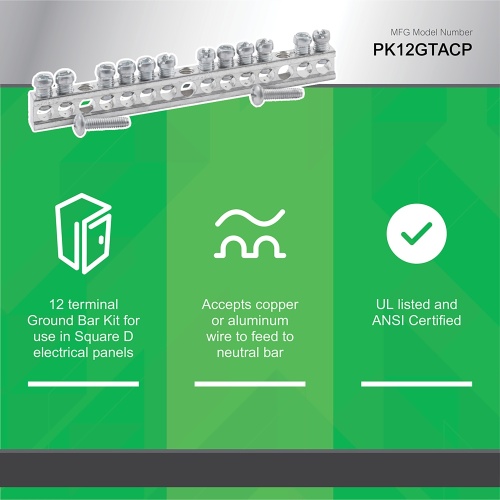 Schneider Electric PK12GTA - Load center accessory, QO/Homeline, ground bar kit, 12 terminals