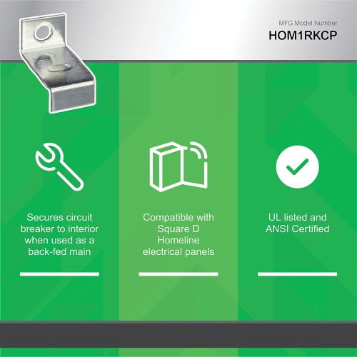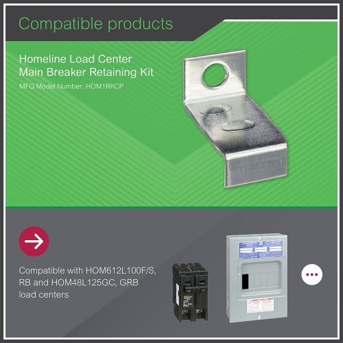 This retaining kit secures circuit breakers to the interior for HOM612L100F/S, HOM612L100RB, HOM48L125GC or HOM48L125RB load centers